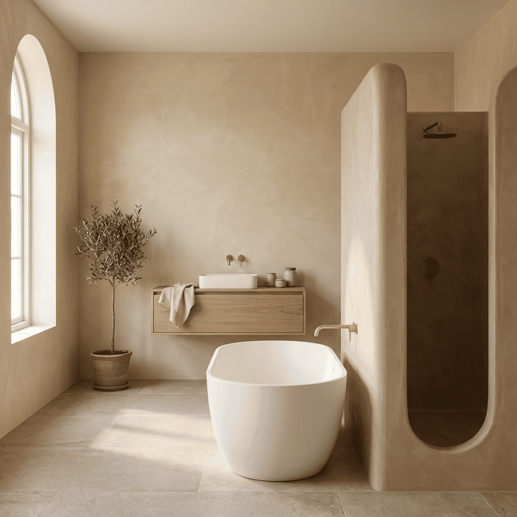 Used for centuries across Europe and the Mediterranean, lime plaster is durable, breathable, and naturally resistant to mold. It works beautifully on bathroom walls outside direct water spray and throughout kitchens where humidity levels fluctuate daily.